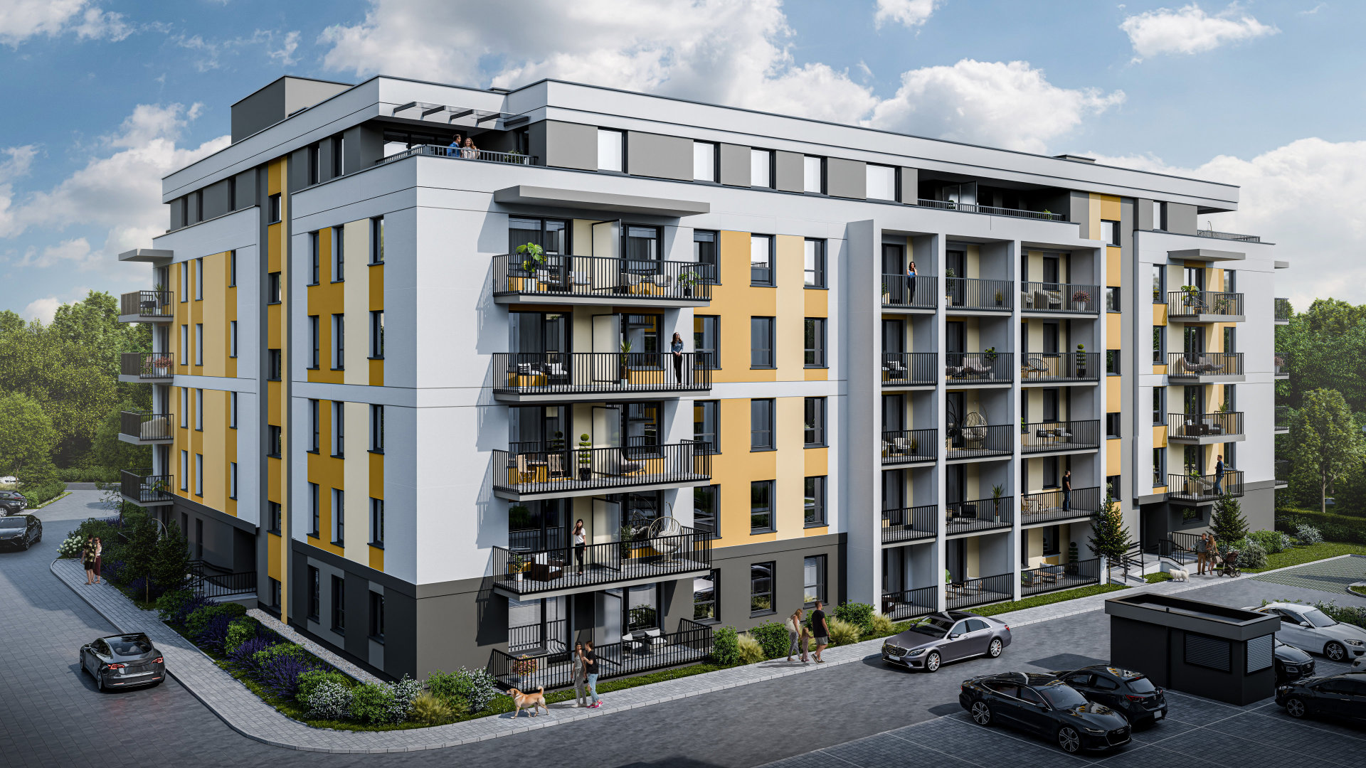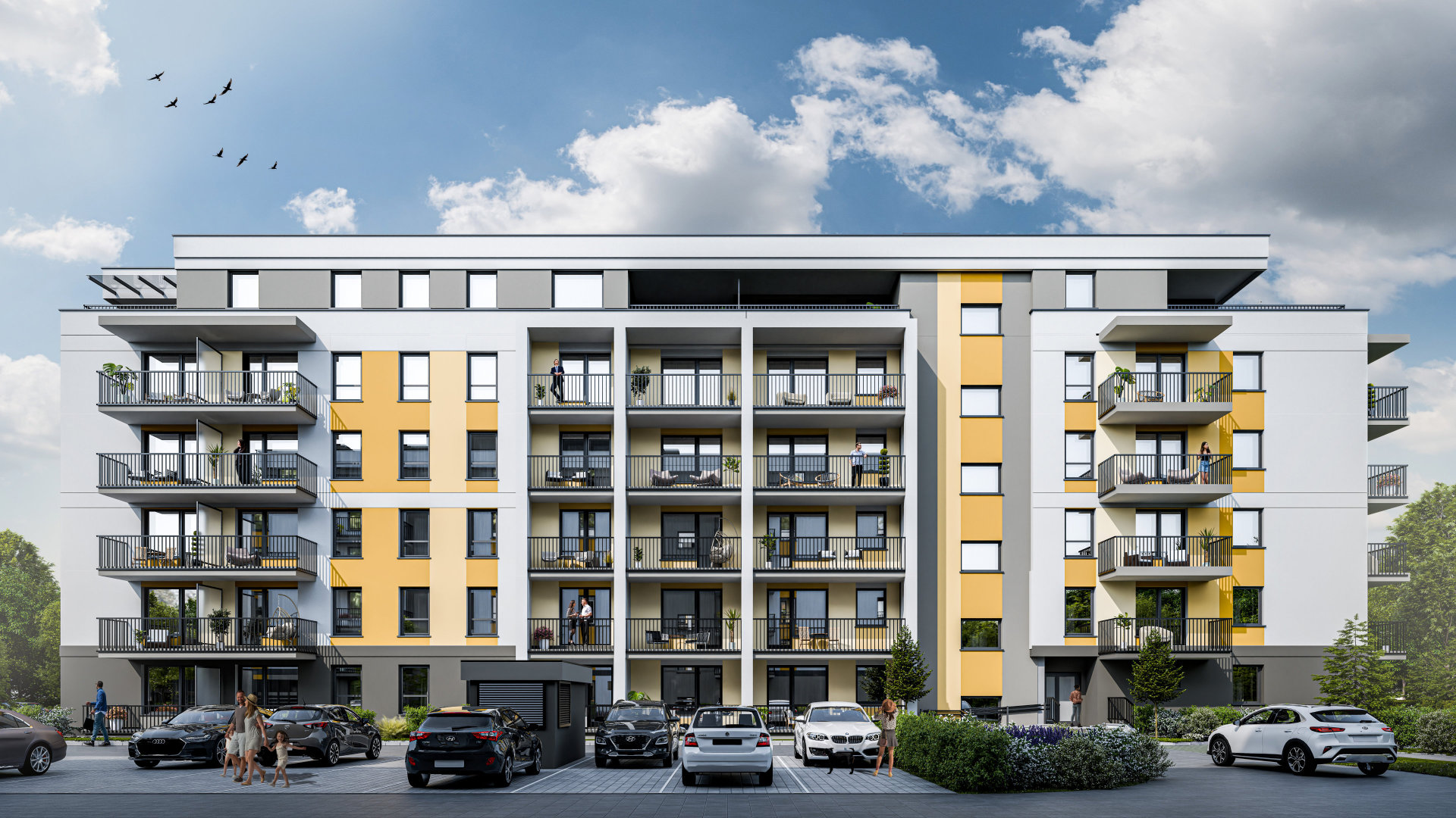 Lubisz odpoczywać na świeżym powietrzu? Zielone Południe daje Ci taką możliwość bez względu na to, którą kondygnację wybierzesz. Mieszkania na parterze i ostatnim piętrze mają tarasy z dużą ilością światła, a pozostałe lokale mieszkalne oferują przestronne balkony. Do tego wygodne parkowanie: miejsca w garażu podziemnym i dodatkowe stanowiska naziemne, dzięki czemu masz gdzie pozostawić swój samochód.